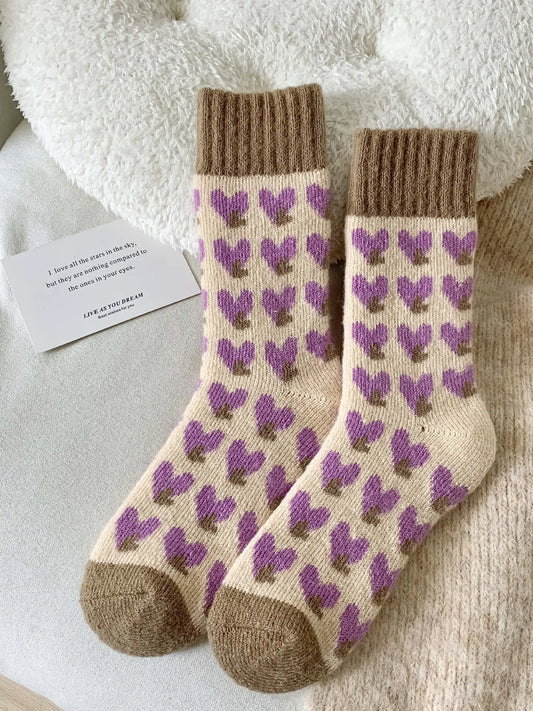 Thick Wool Socks | Purple Hearts