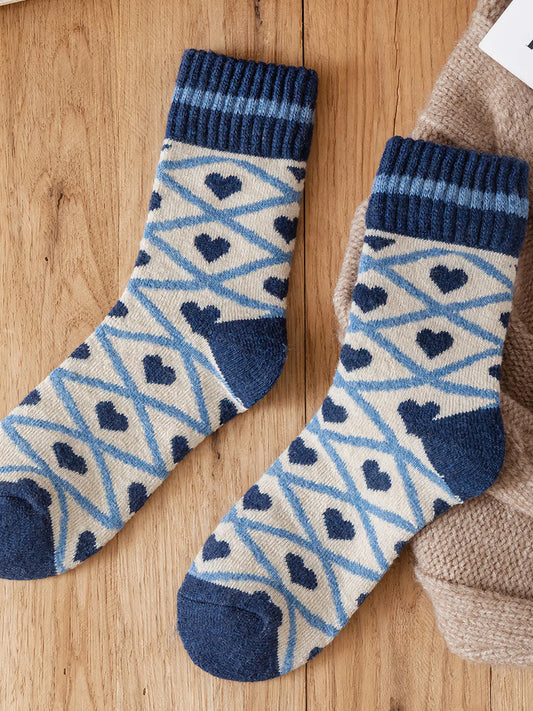 Thick Wool Socks | Blue Hearts