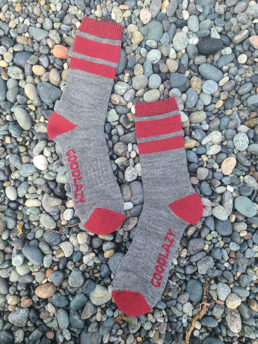 Merino Wool Mid Crew Socks | Grey + Winter Red