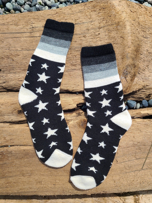 Thick Ankle Socks | Black + White Stars