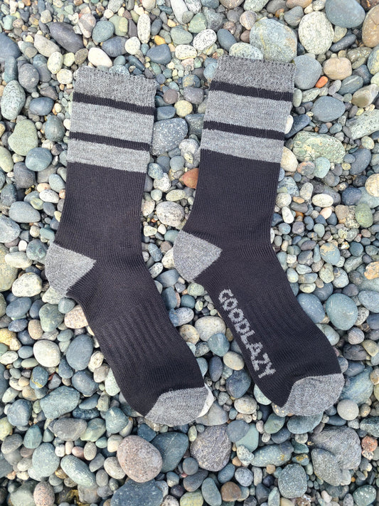 Merino Wool Mid Crew Socks | Black + Grey