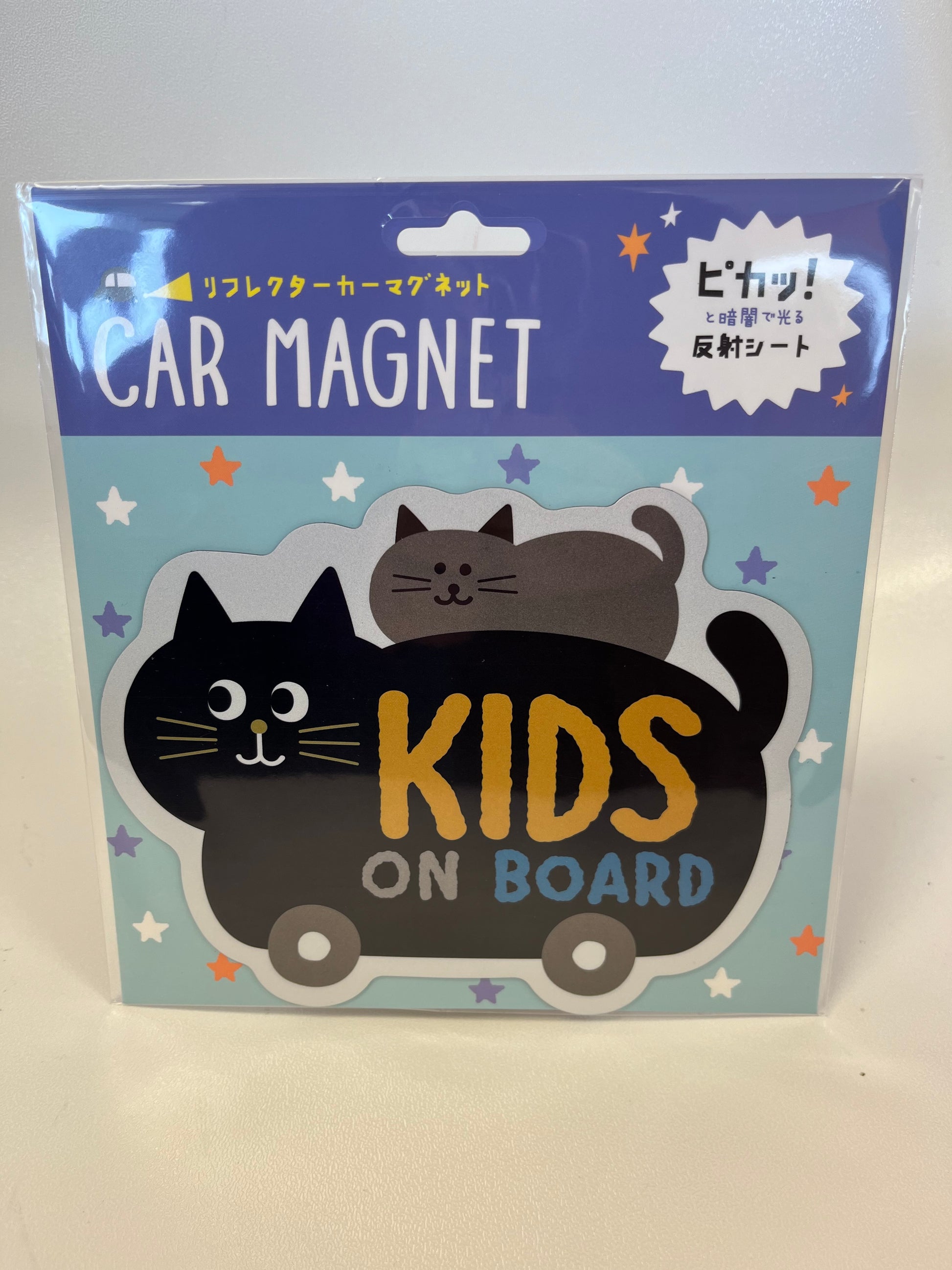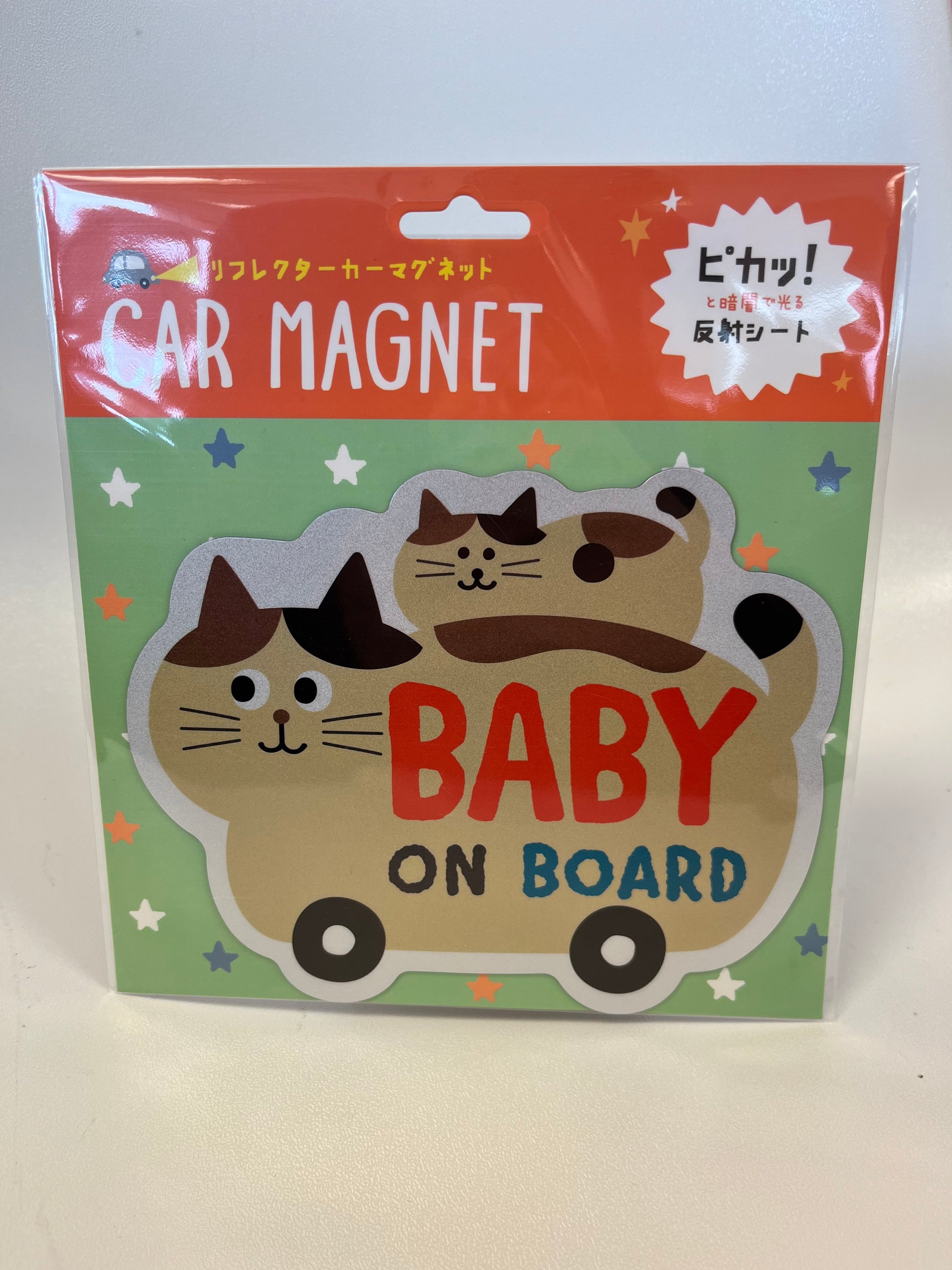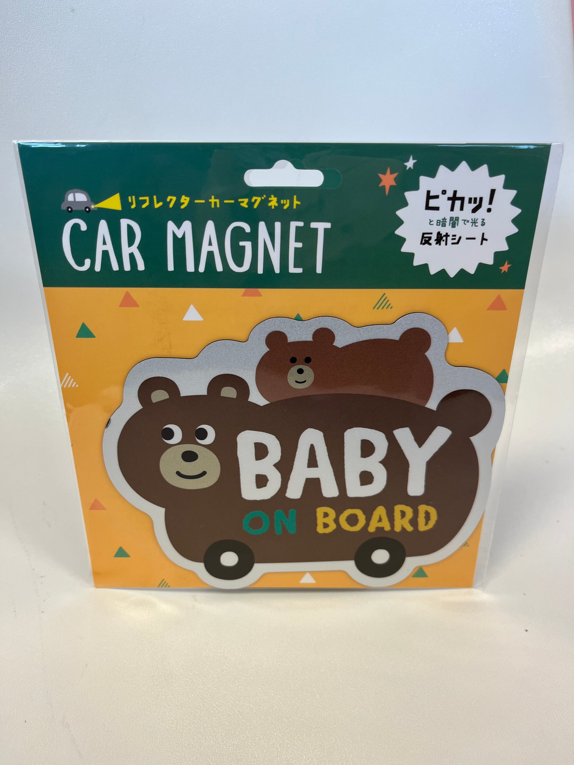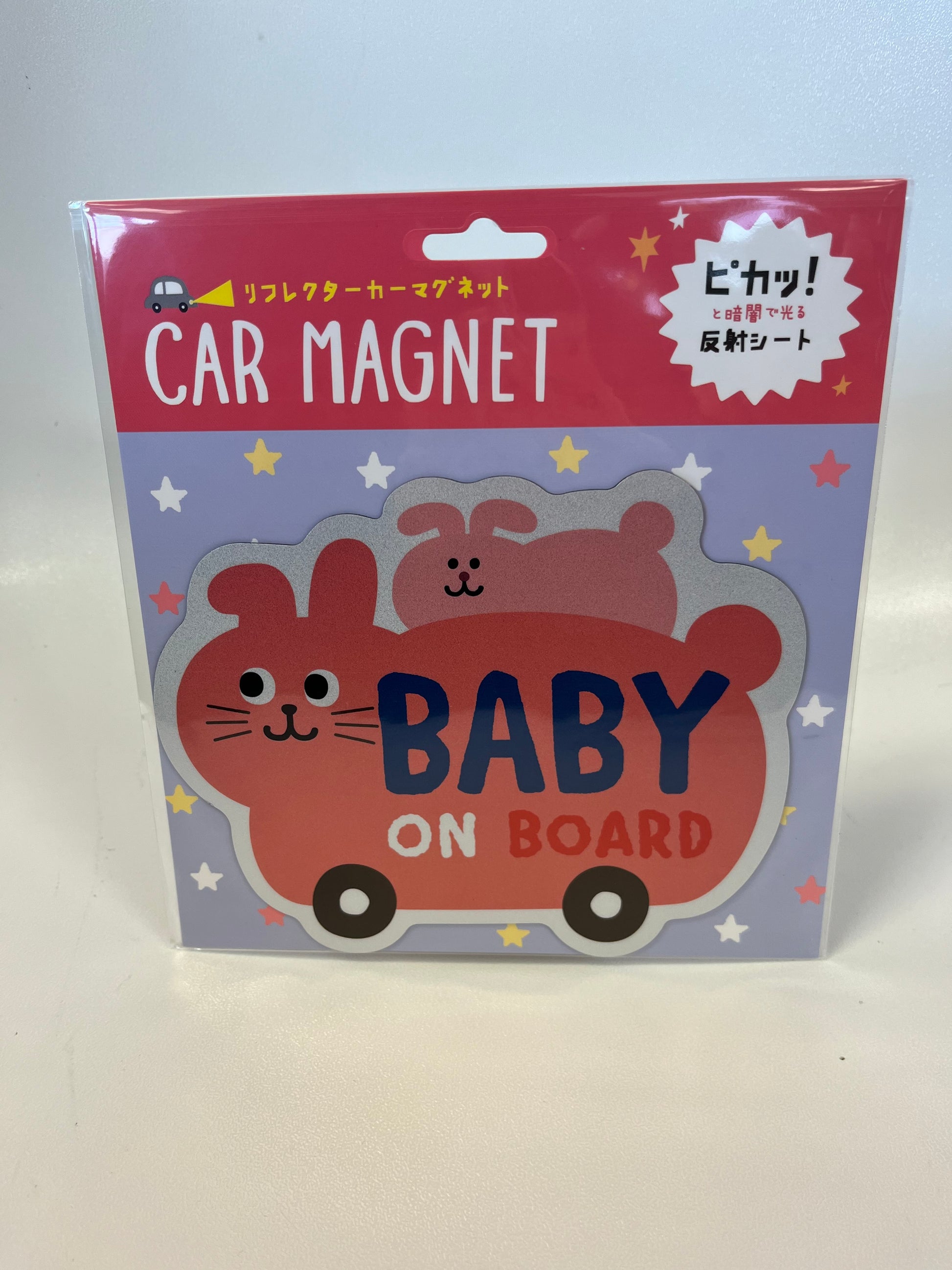 Let everyone know who's on board! Colourful magnet to slap on the back of your car - reflects light as well!