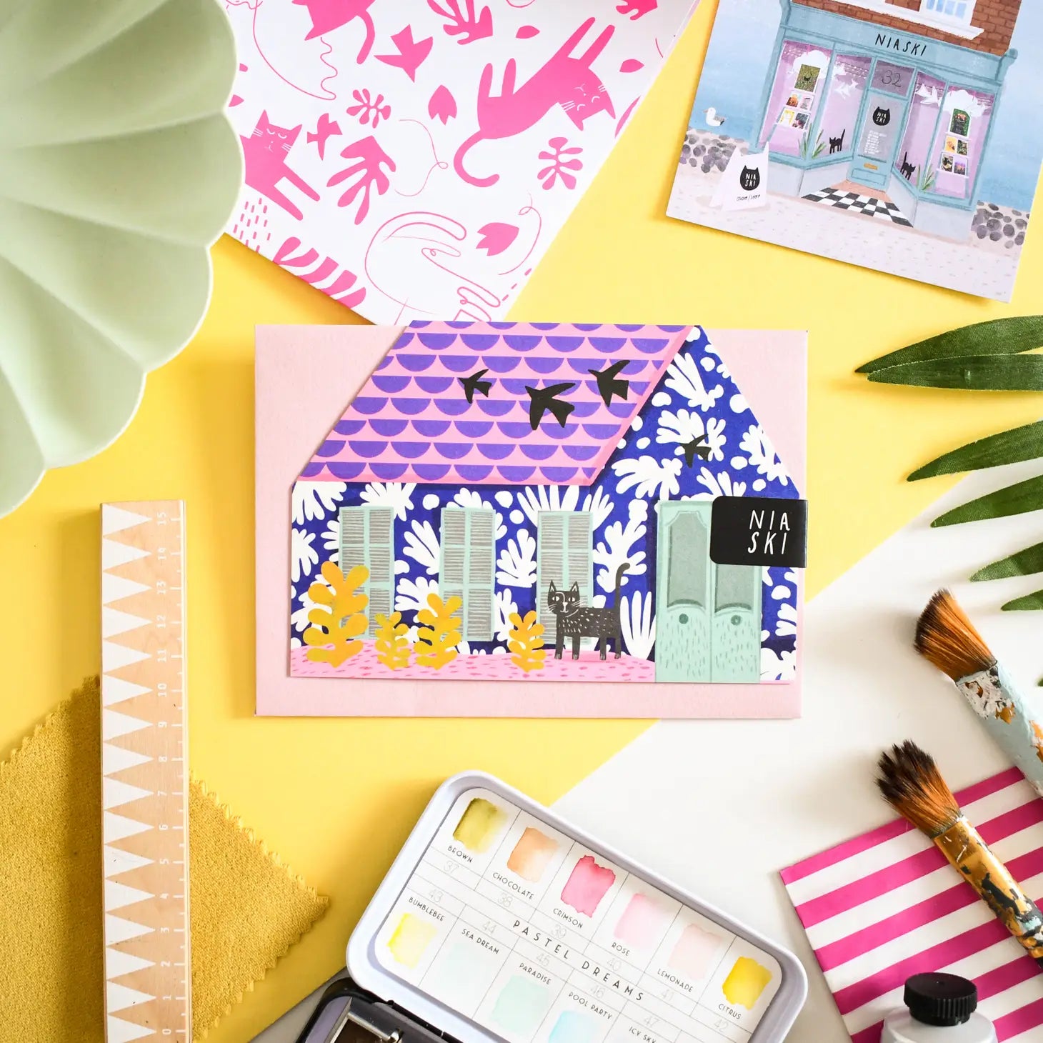 Combining a love of cats and a passion for art, illustrator and designer Nia Gould (‘Niaski’) has created a punny card range celebrating the life and times of artistic felines.