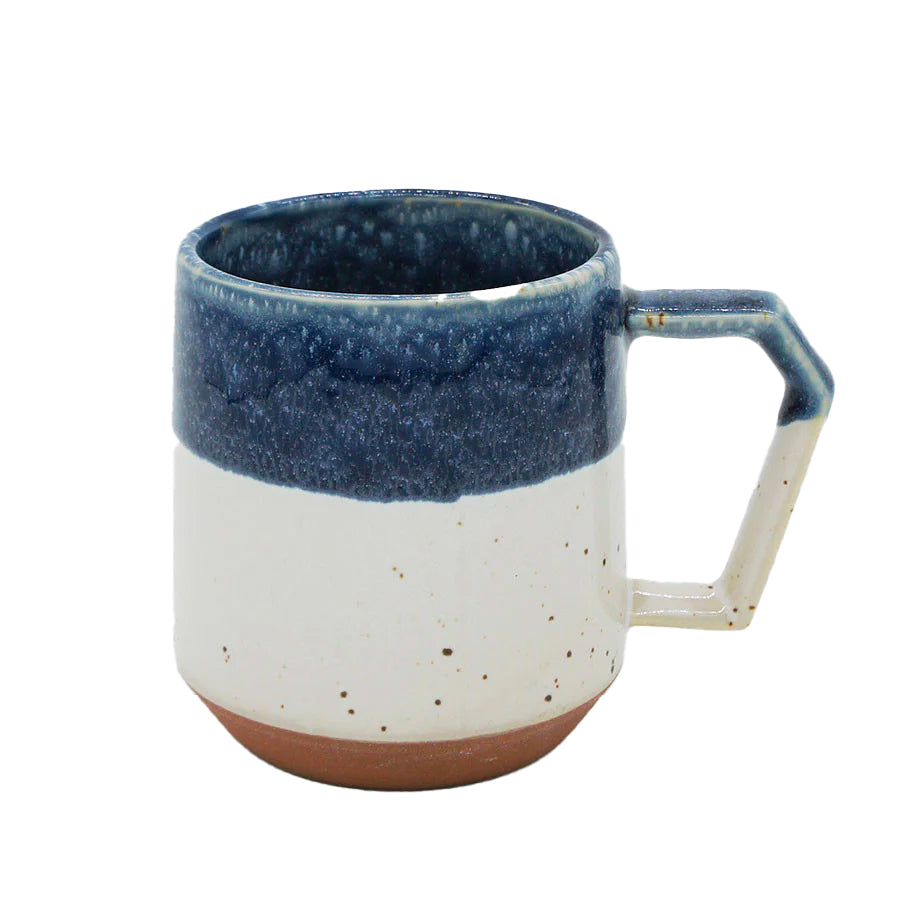 The silhouette of the product was created from the mold in pursuit of user-friendliness and ease of holding. Despite its large capacity of 380ml, it fits snugly in the hand and can be lifted without feeling heavy. This stunning mugs are dip glazed in a splatter and leaving the base exposed. The unique handle shape is satisfying to hold, anytime of the day!