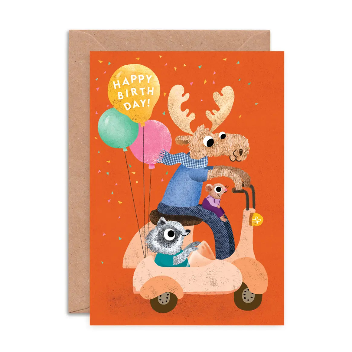 A bright and colourful birthday card with illustrations by Emily Nash.