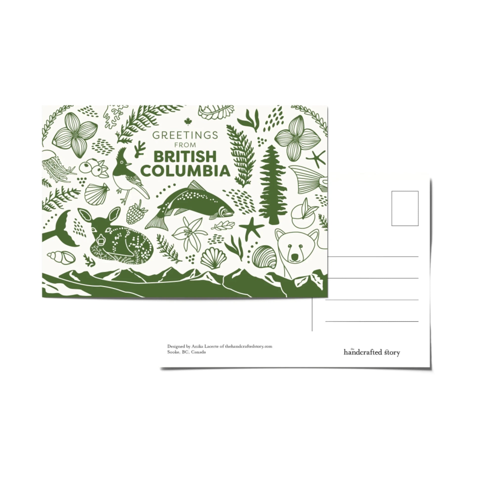 Celebrate the spirit of British Columbia with this forest and coastal-themed postcard.