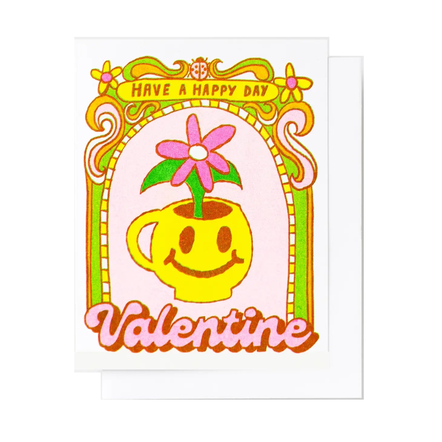Risograph is what you would get if a screen print and a mimeograph had a baby; images are printed one color at a time and colors are layered on top of each other making each card unique. The vivid colors and playful imagery are sure to brighten anyone's day!