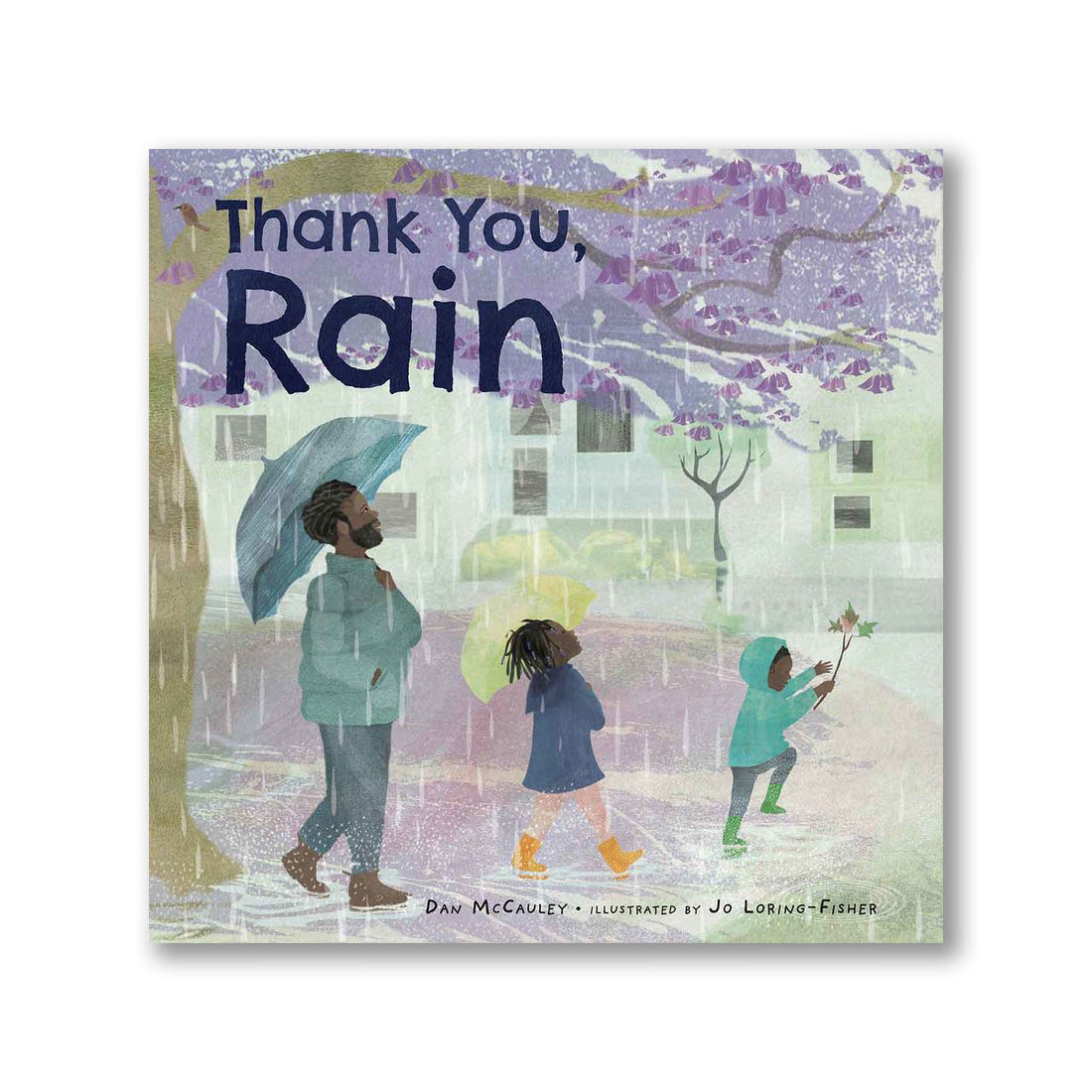 Watching rain dance down her window, a child is feeling cooped up and gloomy because she can't go outside. Then her dad comes home and insists that they go on their evening walk, rain or no rain. Together Dad, the girl, and her little brother take the time to watch the rain as it dances. And they dance too. When the rain becomes a downpour, they find shelter under a tree, where they take the time to listen to the rain as it drums out a rhythm. They drum too. When it's time to go home, the girl no longer feels sad about the rain.